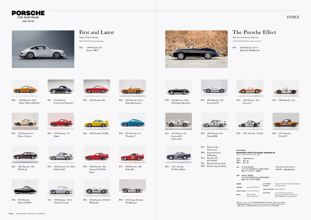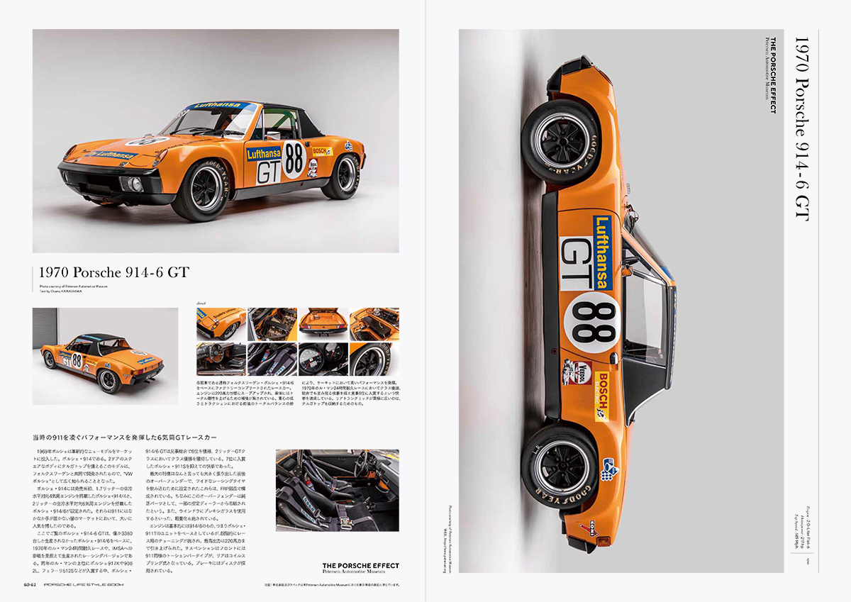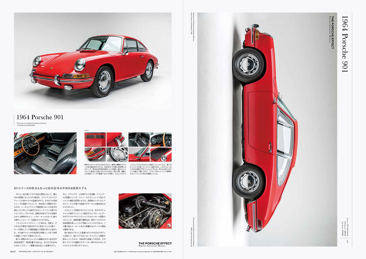 空冷ポルシェをテーマにした本書では、今回米ロサンゼルスのピーターセン自動車博物館の協力を得て、2019年1月まで開催されている「The Porsche Effect」を大特集。展示車両の美しいスタジオ写真を使って構成しました。