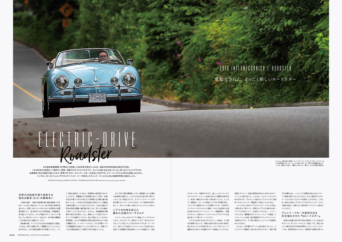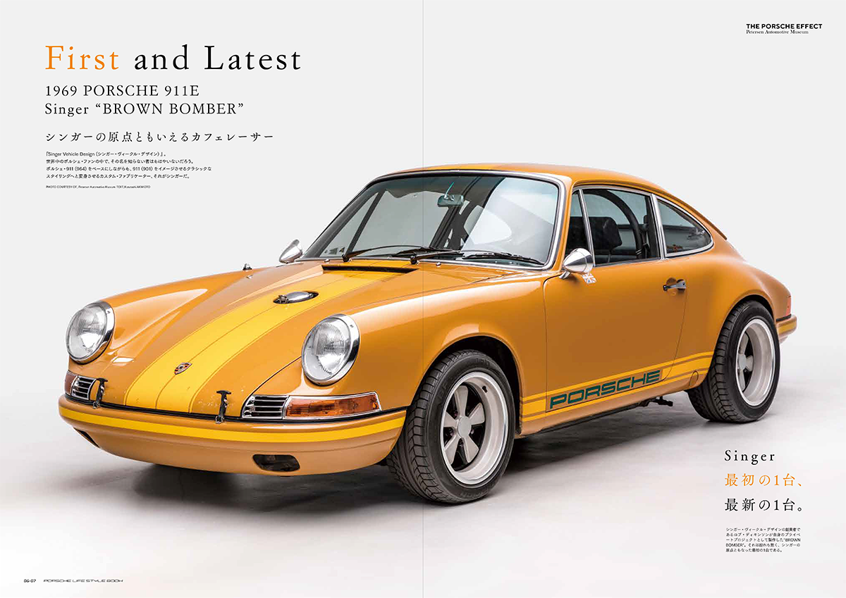 また、巻頭特集ではその「The Porsche Effect」にも展示されている米ロサンゼルスのSinger Vehicle Designの原点ともなった1台、1969ポルシェ・911E”Brown Bomber”と、最新モデルの”DLS”を紹介。さらにスティーブ・マックイーンが愛した1958年型ポルシェ・356A 1600 スーパー・スピードスターの記事も掲載しています。