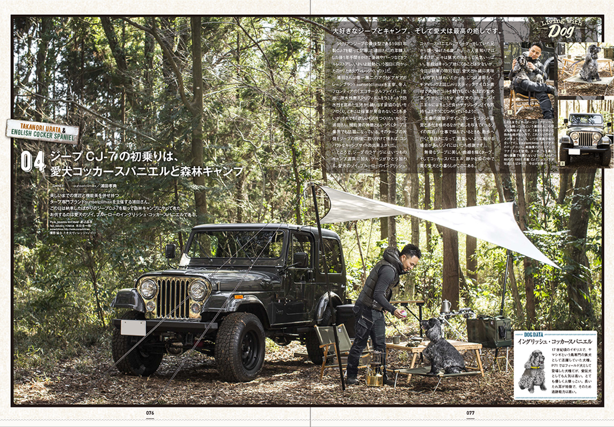 また、第二特集はCal的ドッグライフ『愛犬と共に生きる』。ハンティングからキャンプにサーフィンまで、様々なジャンルで活躍する愛犬家のライフスタイルと、そのキュートな愛犬たちを紹介しています。