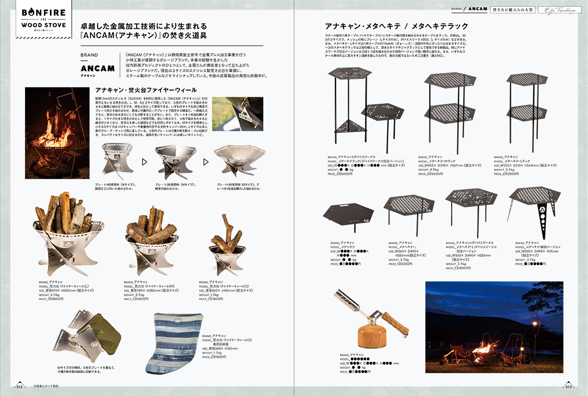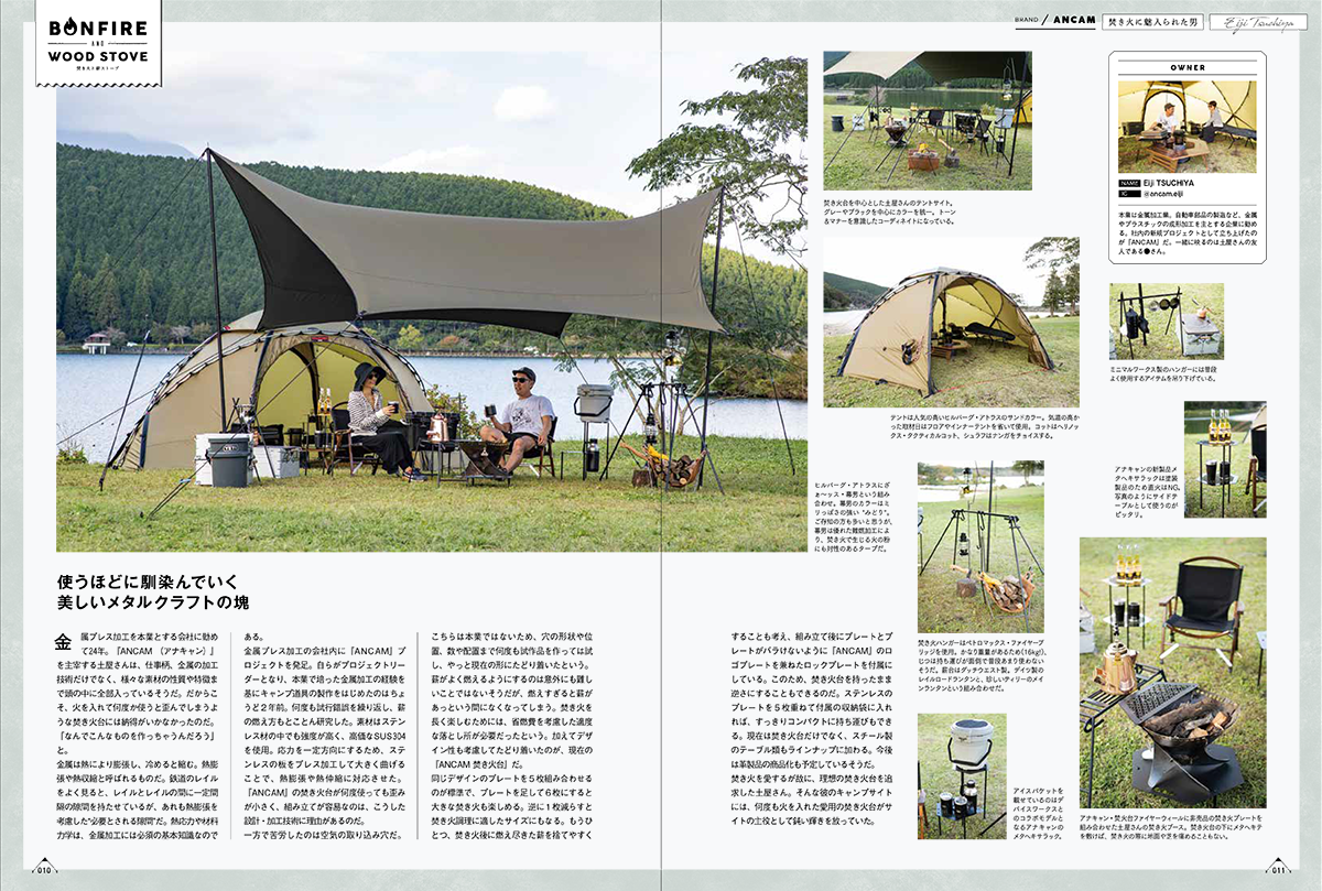 第9号は「焚き火と薪ストーブ」の大特集。ガレージブランドとして人気の高いANCAM(アナキャン)に加え、7月にスタートしたばかりのガレージブランドのLLMA(ラマ)に注目。製品だけでなく、焚き火に魅せられた開発者のストーリーまでご紹介します。