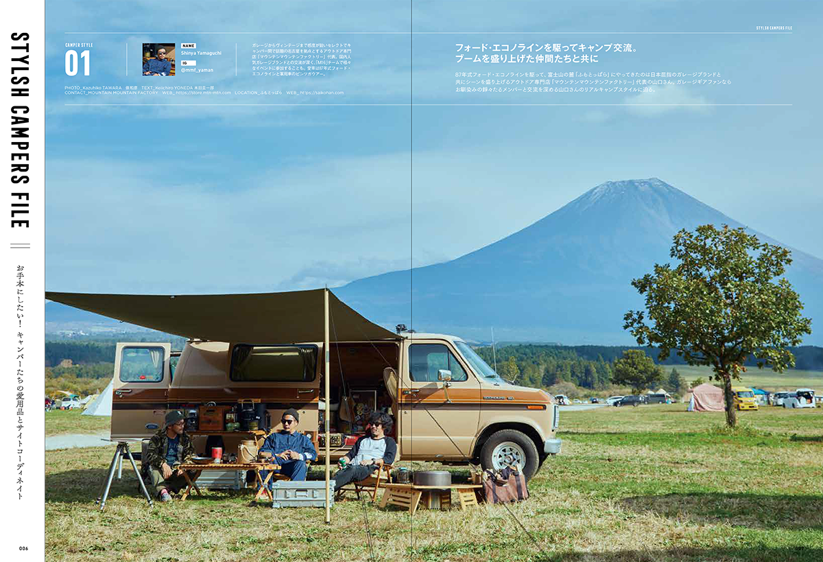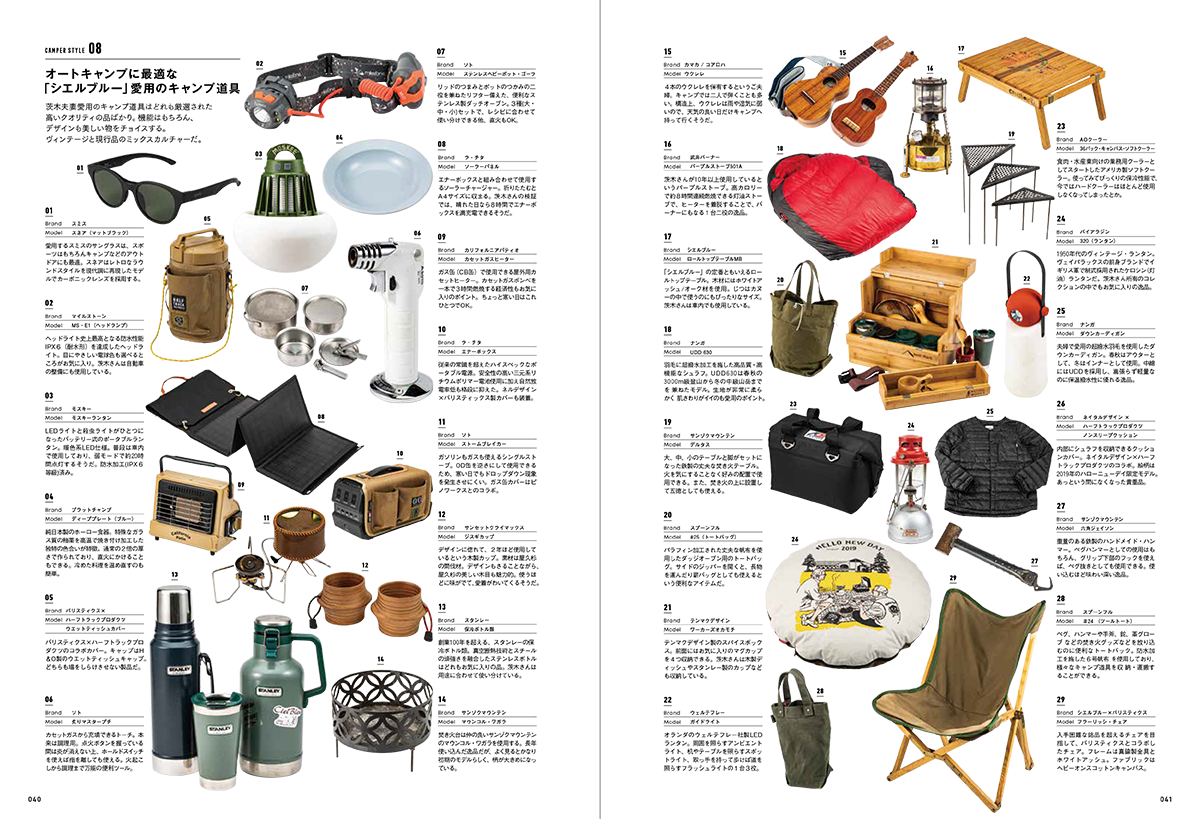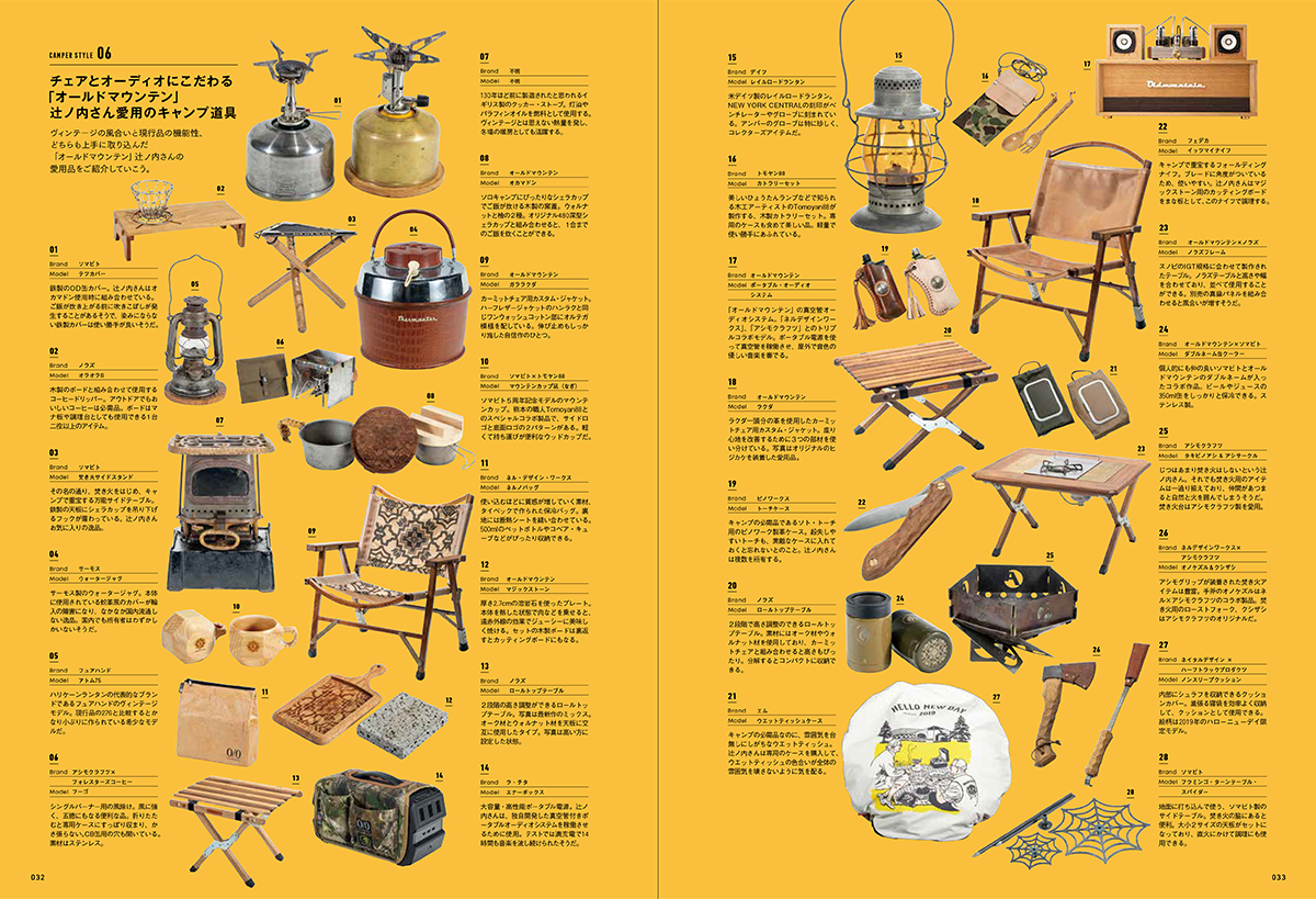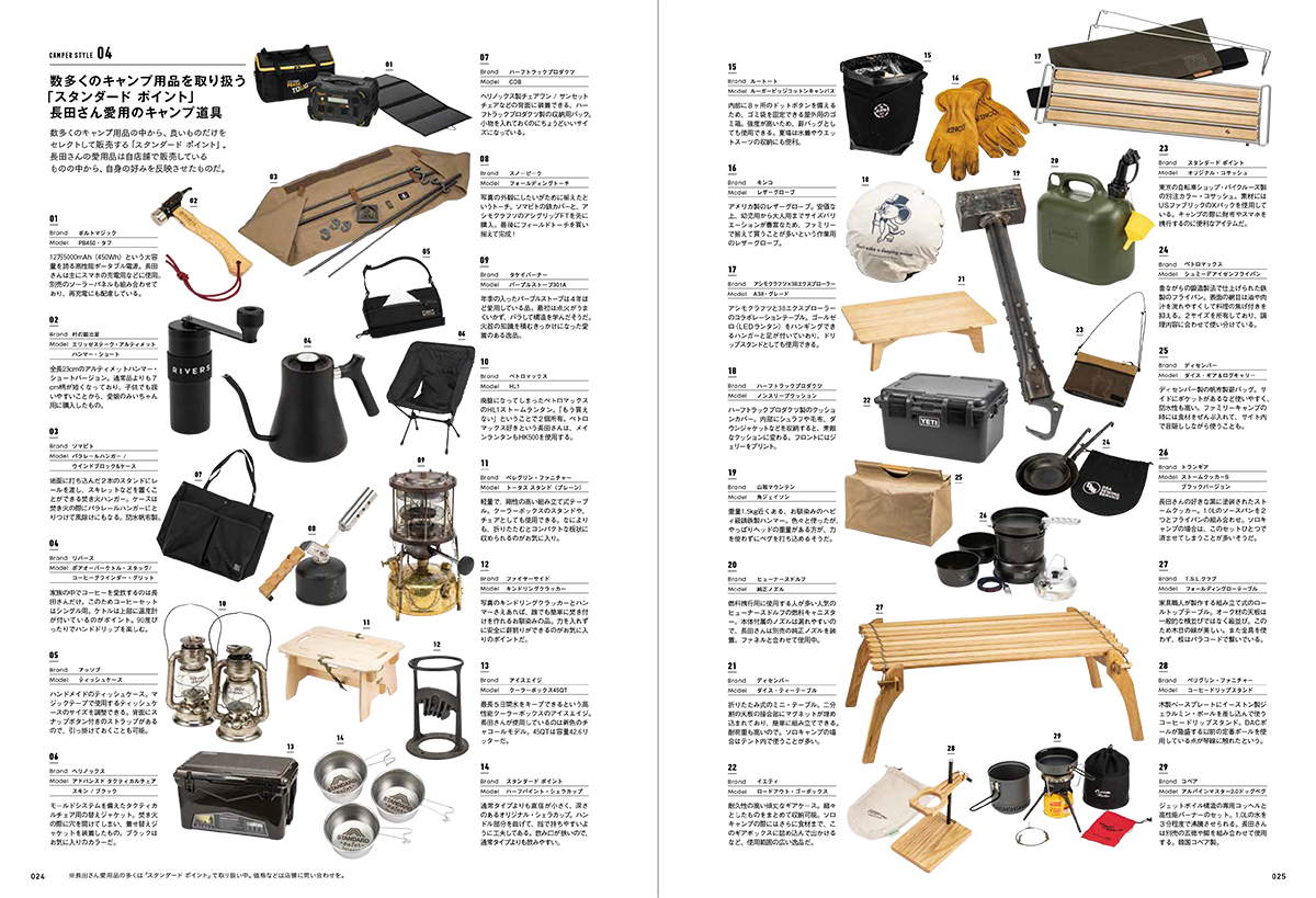 SNSで注目を浴びるキャンパーや、話題のガレージブランドを主宰するキャンパーなどが、実際に使用している愛用のキャンプ道具や、サイト実例を詳しく紹介しています。