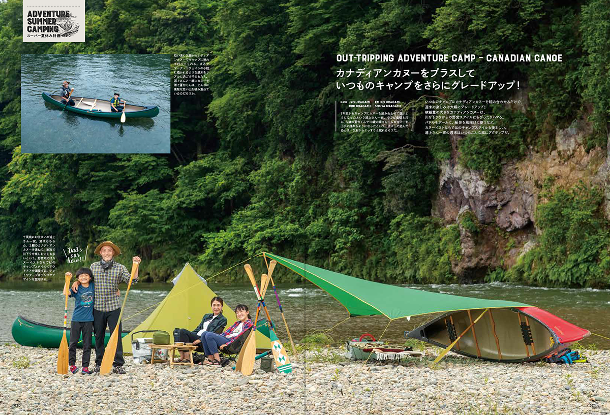 夏休みを満喫する企画として、子どもと一緒に作るキャンプご飯はスイーツ特集。さらに千葉・滋賀・兵庫・山口・福岡・大分など、家族で行きたいキャンプ場も掲載しました。