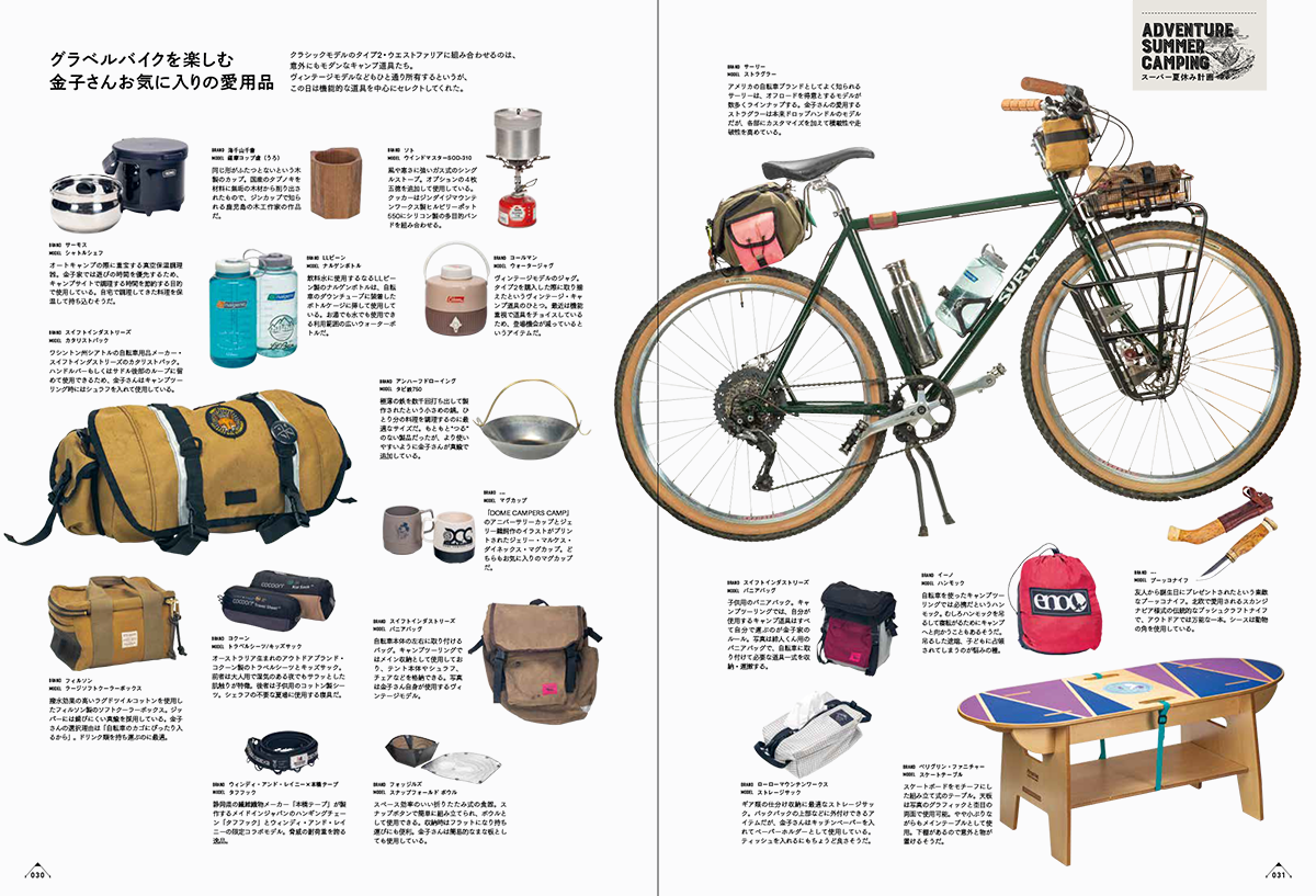 キャンプグッズ・マガジンvol.19(Camp Goods Magazine vol.19)は、いつもの夏休みをグレードアップする「スーパー夏休み計画」からを筆頭に、おしゃれキャンパーたちの愛用品をテーマにした「スタイリッシュ・キャンパーズ・ファイル」や、全国のスペシャルショプをご紹介する連載企画など、個性的なキャンプ道具がずらりと並ぶ1冊です。