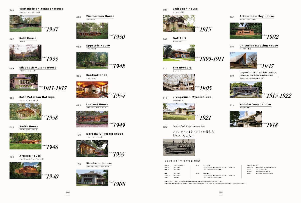 雑誌Calのバックナンバーで2回にわたって掲載してきた建築実例をまとめた他、さらに未収録だったユニティー・テンプルなどの作品群10作品を新規に収録。