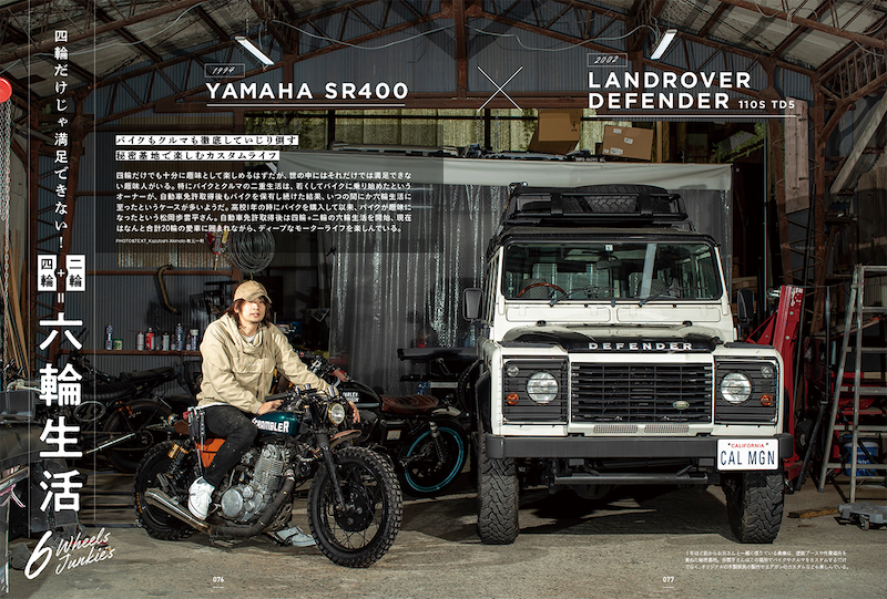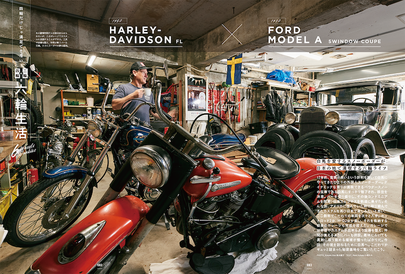 また第二特集は二輪+四輪=六輪生活のススメ。なんと合計20輪を所有するというオーナーのバイク&カーライフを紹介しています。