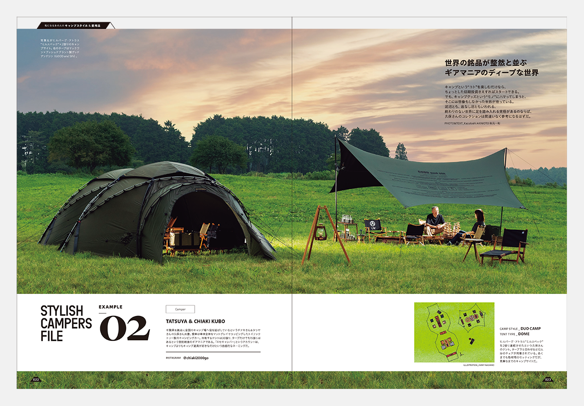 今回は北海道から九州まで、合計10人のキャンパーを取材し、さまざまなスタイルのキャンプを収録した。気になるあの人のキャンプスタイルと、その愛用品。
