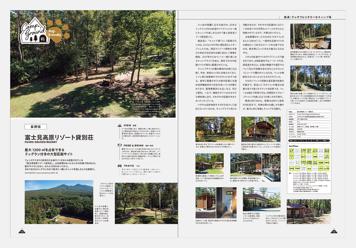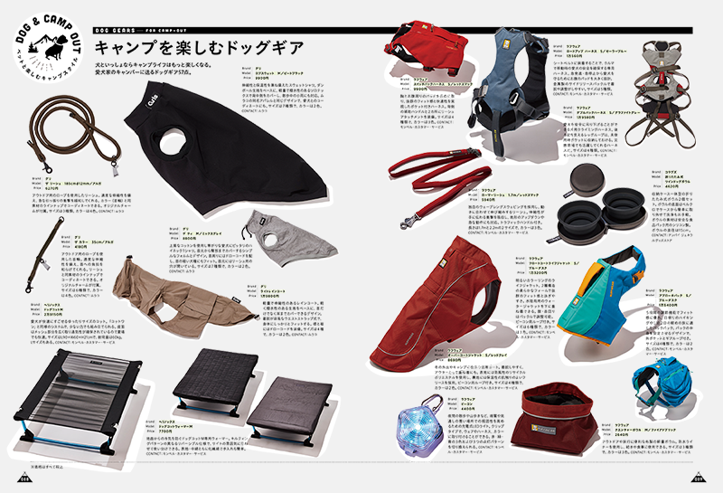 また第二特集には「ペットと一緒に楽しむキャンプ」を特集。グッズからマナーにドッグフレンドリーなキャンプ場まで、愛犬家のキャンパーにも必携の一冊です。