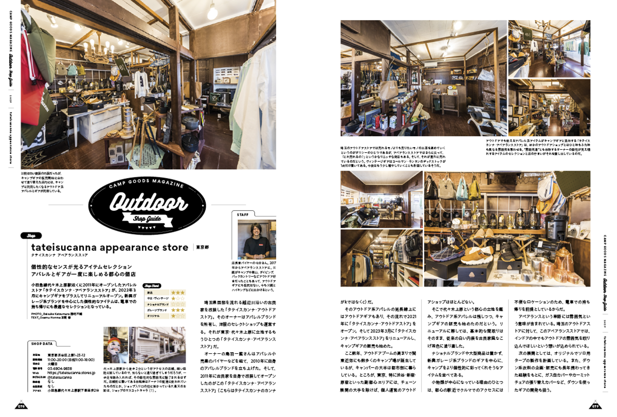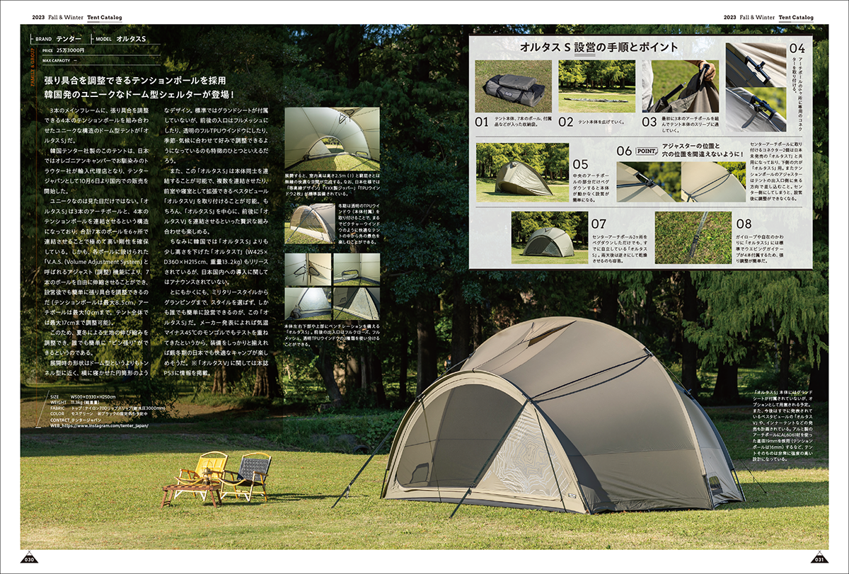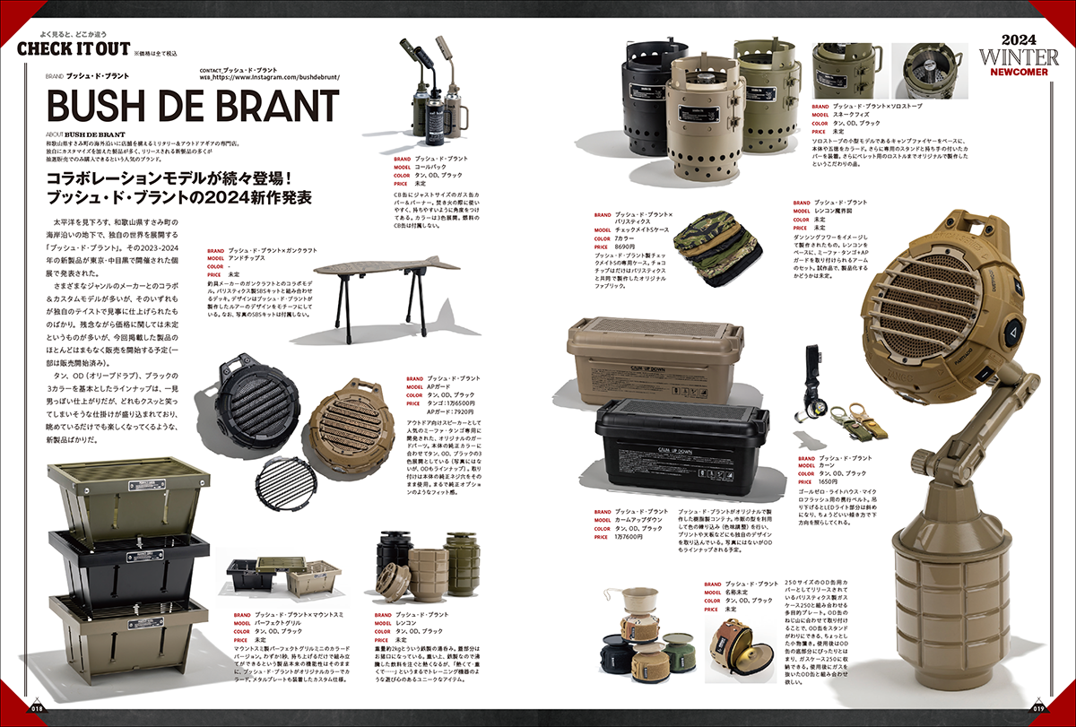 ネルデザインワークス、オールドマウンテン、ブッシュ・ド・ブラントなど人気ブランドの新製品に加え、これからのシーズンに最適なテント64モデル、フィールドに映えるアウターなどの新作・おすすめモデルを掲載。