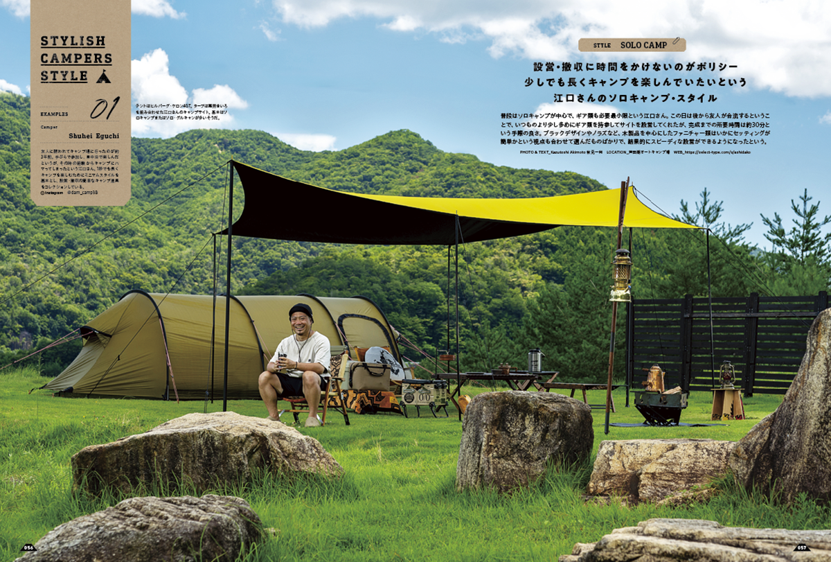毎回好評を博しているキャンパーたちのサイト実例では「ソロ」「デュオ」「ファミリー」という3人(組)のキャンパーたちも紹介しています。