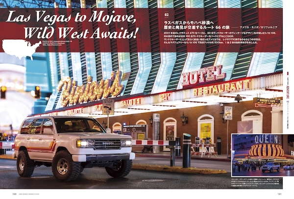 ランドクルーザーで旅する世界旅行は、オーストラリア・アウトバックから“トゥループキャリア”で行く北海道の旅、さらに編集部もラスベガスからルート66を経由してアリゾナまでのショートトリップを敢行。