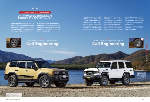 現行最新モデルではランドクルーザー250や300など、まさに新旧ランドクルーザーを美しい写真と共にお届けします。