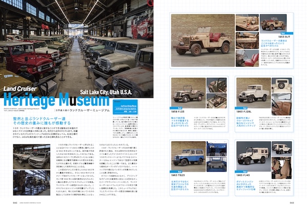 さらにランドクルーザー・オーナーのガレージ紹介や、アメリカ・ユタ州のランドクルーザー・ミュージアムからは収蔵車の紹介も。