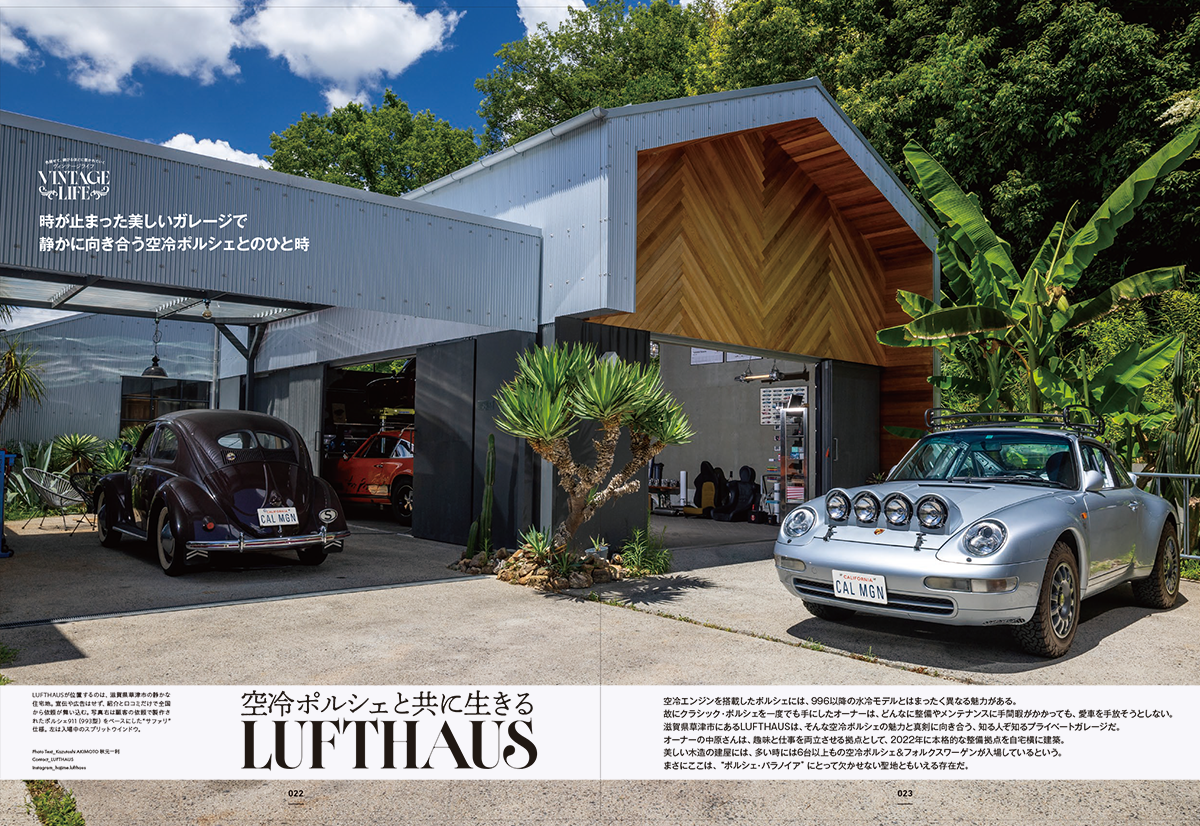 ¬フォルクスワーゲン・タイプ2と暮らすために、ガレージとアトリエ、住まいがひとつになったスペースを建築したオーナー。空冷ポルシェを愛するあまり、本格的な整備を可能とするプライベートガレージを建築したオーナー。さらに、音楽とヴィンテージコレクションを融合させたジャズ喫茶をオープンさせたオーナーなど、素敵な“夢の集大成”をお届けします。